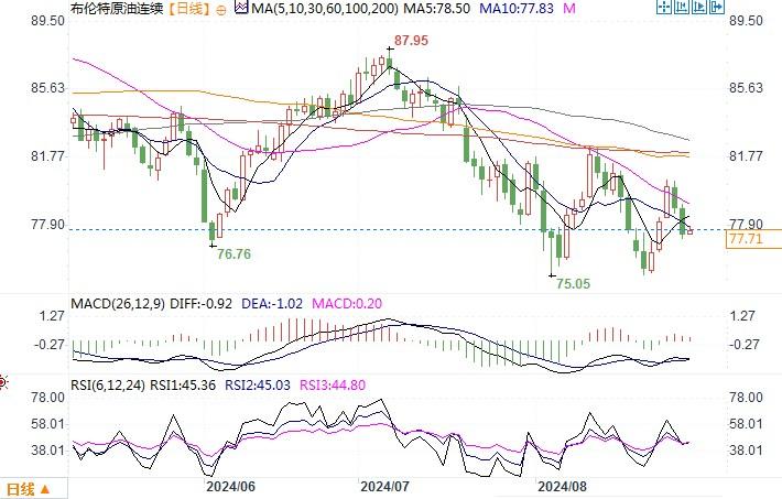 北京时间8月29日13:09布伦特原油连续报77.71美元/桶