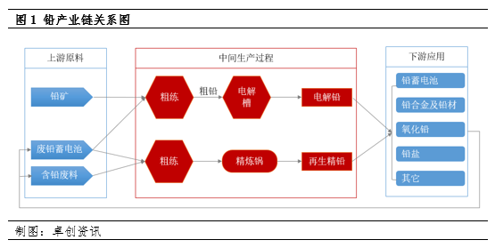 铅(Pb)是一种耐蚀的重有色金属材料,具有熔点低、耐蚀性高、塑性好等优点,被广泛应用到蓄电池、铅合金、铅材等领域,其中铅蓄电池制造领域对铅的需求量占到铅消费量的85%-90%。
