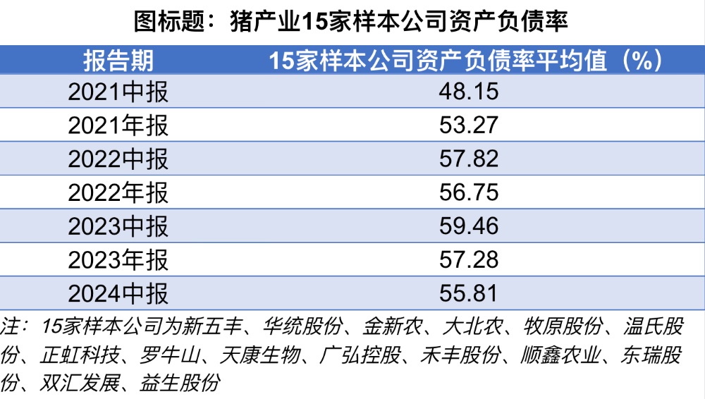行业龙头中,同期牧原股份的资产负债率由62.11%降至61.81%,温氏股份从61.41%回落到58.95%,变化也相对有限。