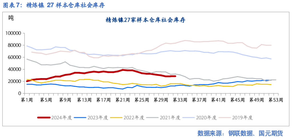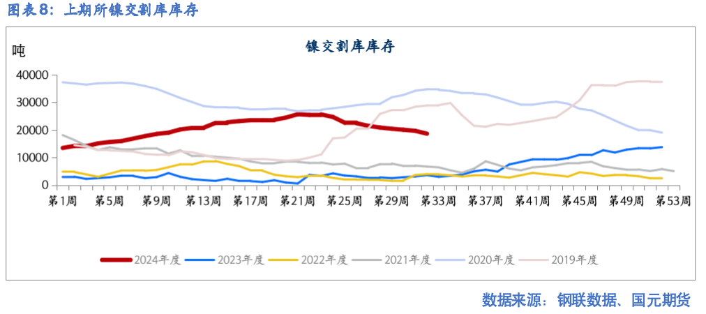 镍铁方面,印尼7月审批放松但是受限于天气,现货供应偏紧,“菲矿印用”现象持续。受成本上升影响,7月印尼镍生铁运行产能下行。国内冶炼厂利润好转,生产表现较好,镍生铁产量小幅增长。纯镍方面,部分企业恢复生产,前期出口利润好转,7月生产维持高位。目前出口利润回落,8月产量难增。在出口增量下,7月社会库存大幅降库。硫酸镍方面,7月产量大幅下滑,8月中国三元前驱体预估产量7.13万吨,环比略有改善。