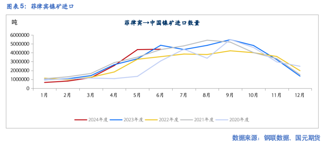 7月菲律宾镍矿价格依然坚挺,“菲矿印用”现象持续,矿山报价居高不下。七月国内市场菲律宾1.8%Ni镍矿CIF价维持在71美元/湿吨,1.3%Ni镍矿CIF在维持32美元/吨;1.5%Ni镍矿CIF在维持47美元/吨。7月镍矿审批加快,但受印尼雨季影响,市场镍矿供应仍然偏紧。