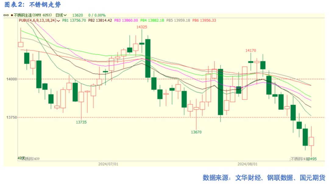 操作建议:震荡偏弱,关注沪镍2409主力合约124000至130000,不锈钢主力合约价格13300-13800。关注美国CPI数据、印尼镍矿审批进程、不锈钢库存变化等。