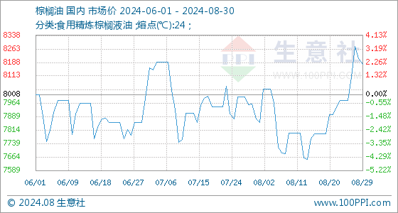 8月30日生意社棕榈油基准价为8180.00元/吨