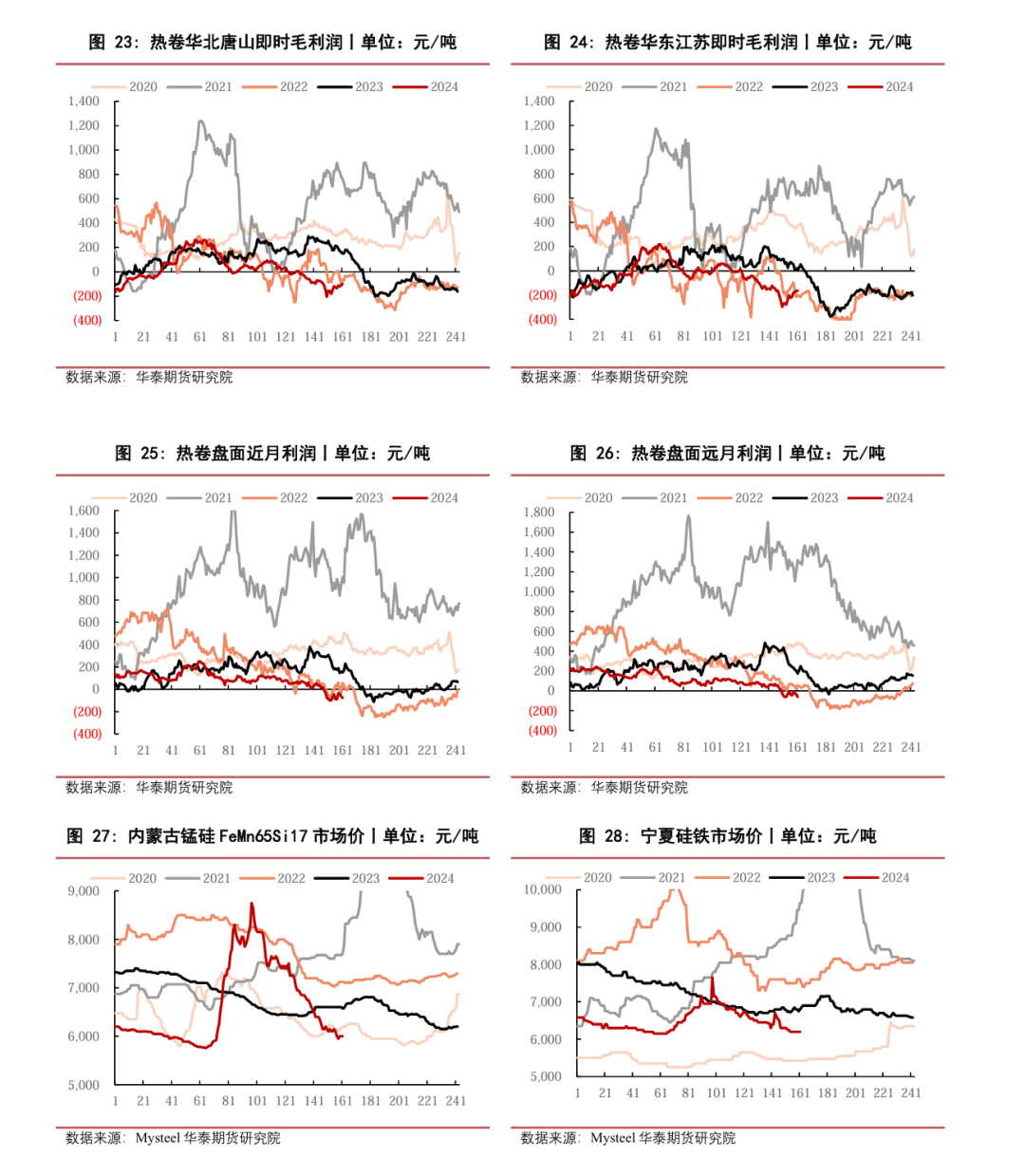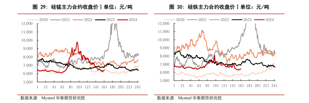 硅锰方面,昨日硅锰期货价格持续震荡,硅锰主力合约收于6420元/吨,较上一交易日上涨14元/吨,涨幅0.22%。整体来看,近期硅锰价格继续回落,硅锰企业处于亏损状态,硅锰企业开工率和产量有所降低,下游黑色需求不佳,制约硅锰需求,硅锰呈现供需双弱格局,后续关注硅锰产量、硅锰库存去库表现。