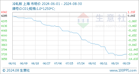 8月30日生意社冷轧板基准价为3732.50元/吨