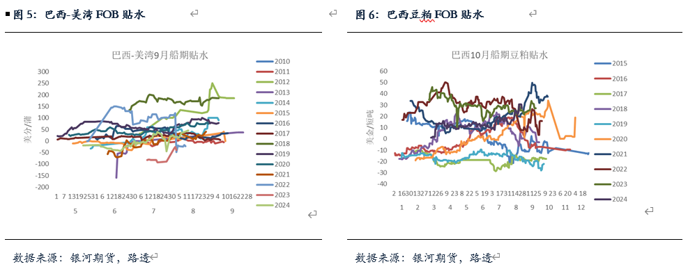 整体来看,当前巴西大豆供应确实有一定的收紧迹象,一方面,受到季节性因素的影响,当前巴西大豆出口基本已经进入淡季,未来可供出口数量在逐步减少;另一方面,数据上看,巴西9月船期FOB贴水较美湾升水约45美分,对中国CNF贴水较美湾升水约5美分,而在此之前,巴西在国际贴水市场上显然更具优势。此外,月内,巴西豆粕贴水呈现明显上涨,截止8月下旬,巴西豆粕贴水上涨至27美金左右,较此前涨幅大约在10美金,这也一定程度说明了当前巴西市场国内大豆供应不算太宽松的状况。
