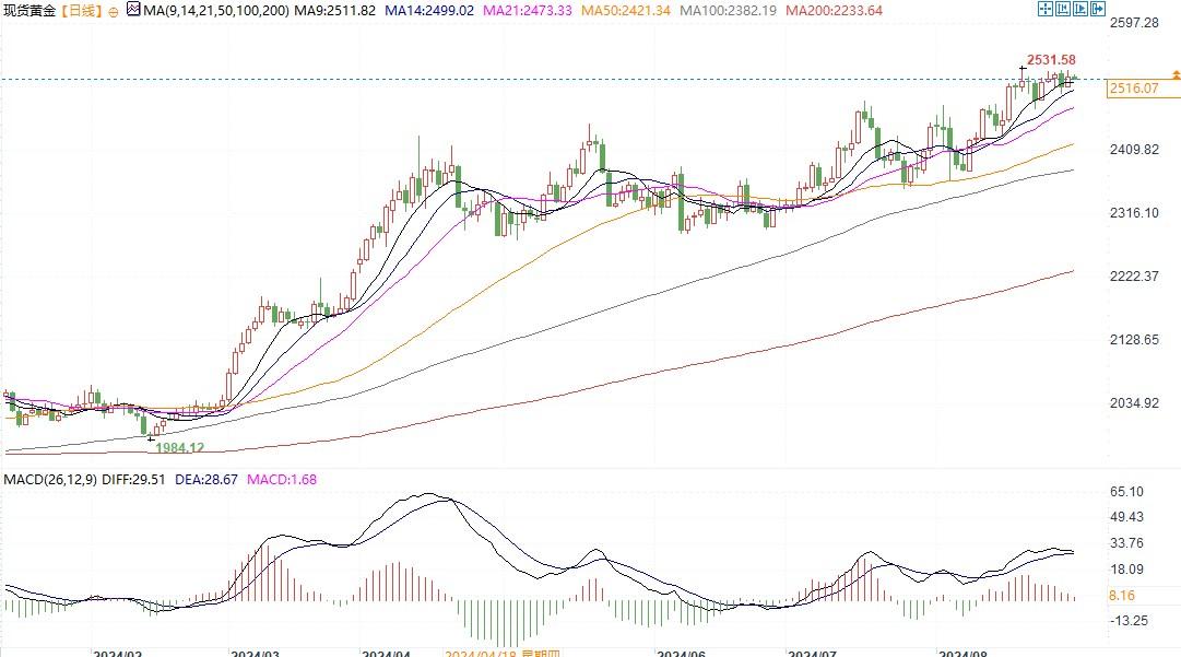 北京时间8月30日10:36,现货黄金报2515.89美元/盎司
