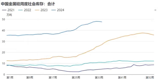 8月23日工业硅全国社会库存为47.6万吨,较前一周环比减少0.4万吨,其中社会普通仓库12.7万吨,较前一周环比增加0.3,社会交割仓库34.9万吨(含未注册成仓单部分),较前一周环比减少0.7万吨。