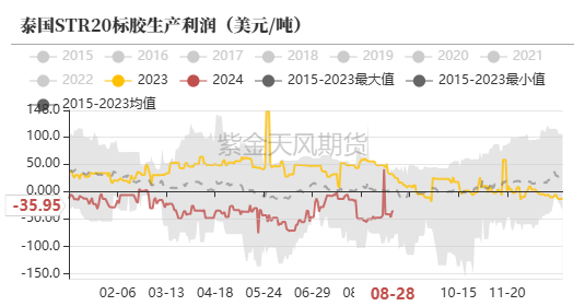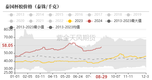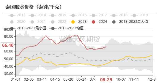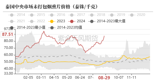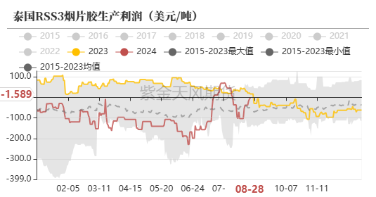 泰国供应:中性原料价格反弹,RSS烟片加工利润较好。