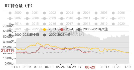 期货库存:RU中性NR中性截至8月29日,上期所天胶期货库存环比增加,20号胶期货库存环比增加。
