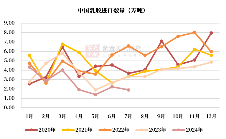 国内供应:中性国内主产区降雨量预计减少,原料价格高位运行,加工利润较好;7月进口量环比大幅增加。