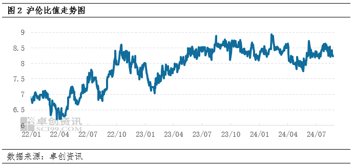 分析7月进口增加的原因,关键原因在于沪伦比值的回温。根据卓创资讯监测,2024年7月,沪伦比值维持在8.1-8.7之间,处于年内较高的位置,且靠近2023年下半年的高位。因此,进口利润空间扩大,进口量增多。除了进口利润的扩大,澳洲及秘鲁等地区矿山生产恢复正常也带动了海外矿山产出的增多,进口的量从而扩大。