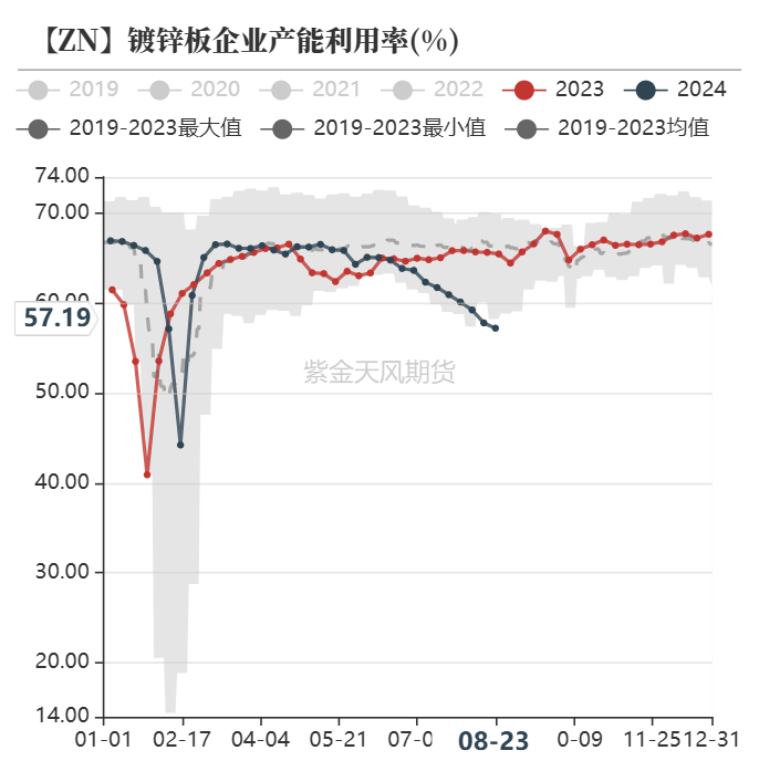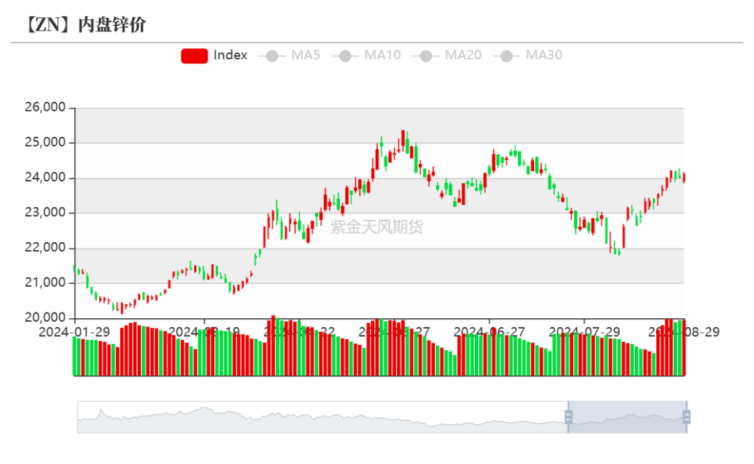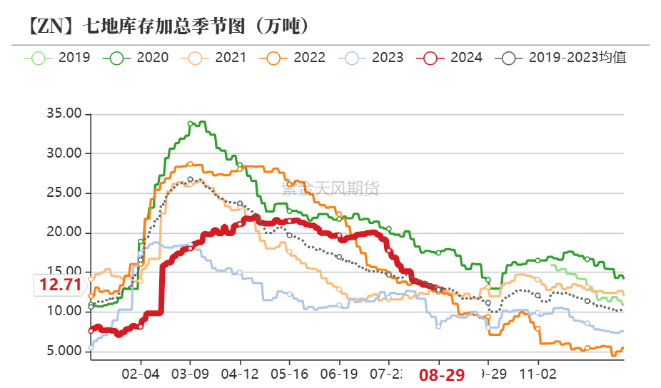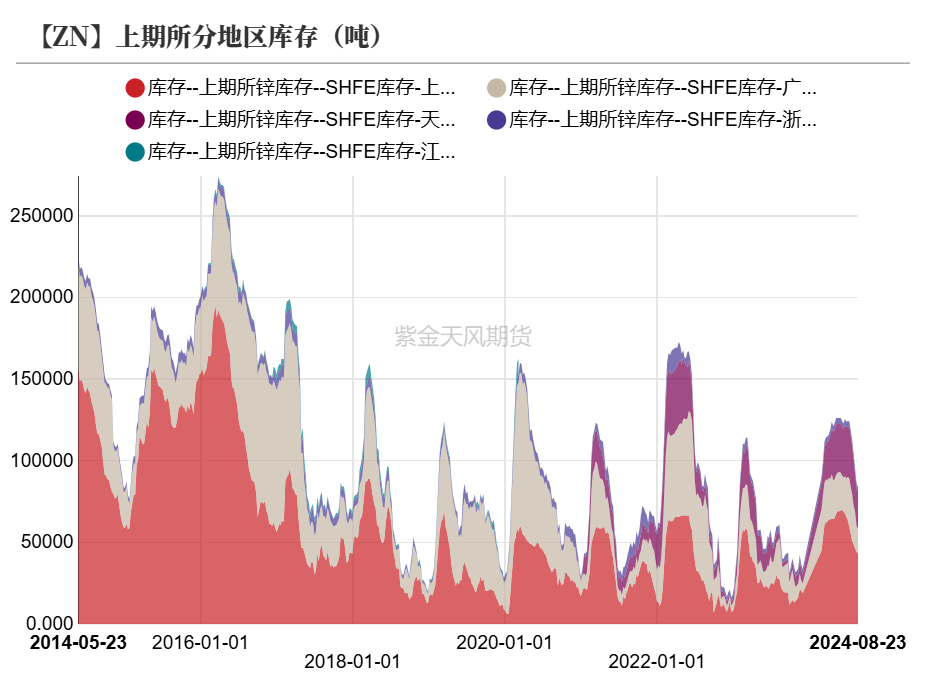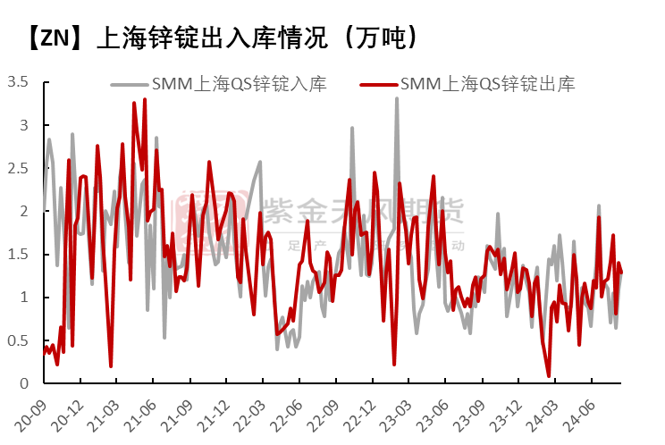 截至本周四,原三地库存去库0.24万吨,七地库存去库0.16万吨,八月份去库3.87万吨,主要原因为仓库到货仍无明显改善,且锌价高位下游畏高仅维持刚需采买。