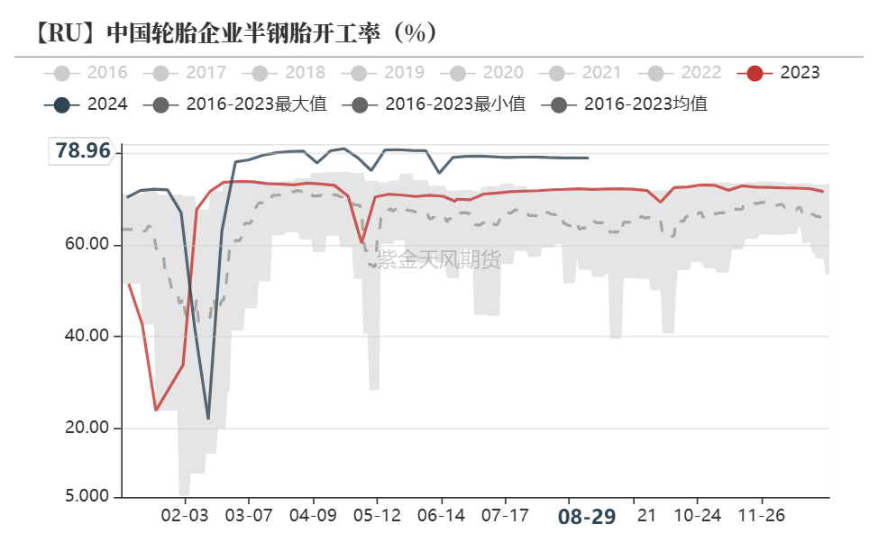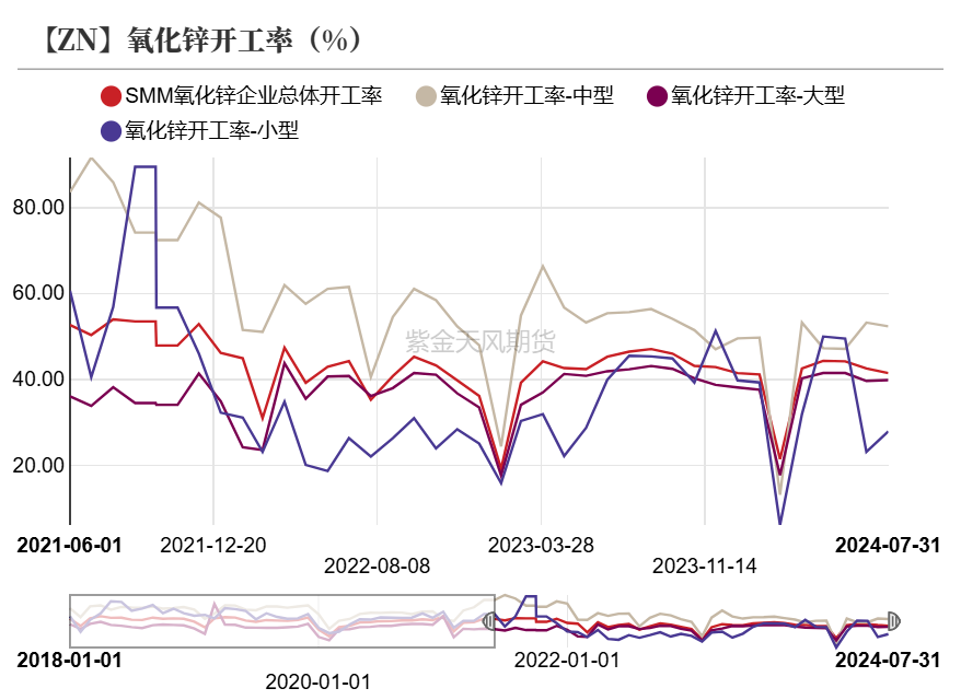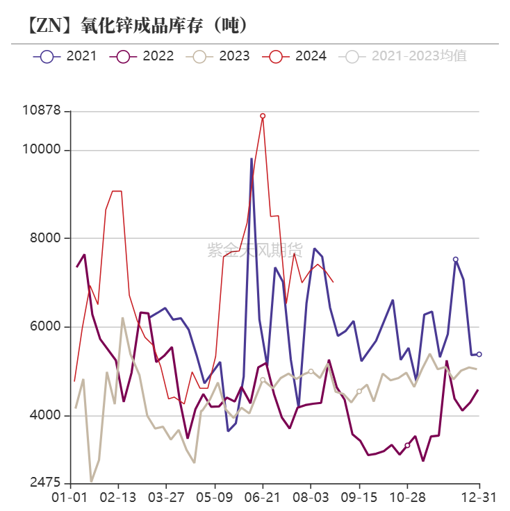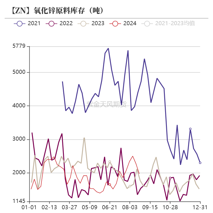 天津地区开工稳中小增,其他地区开工暂无明显波动,基本维持稳定运行。下游轮胎厂成品库存保持相对高位,对于氧化锌的采购持刚需采买。