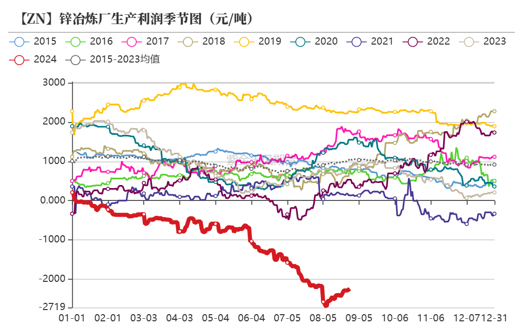 冶炼利润:偏多 周度国产TC环比下滑至1490元/金属吨;周度进口TC下滑至-60美元/干吨。平均冶炼利润环比下降至-2300元/吨附近。