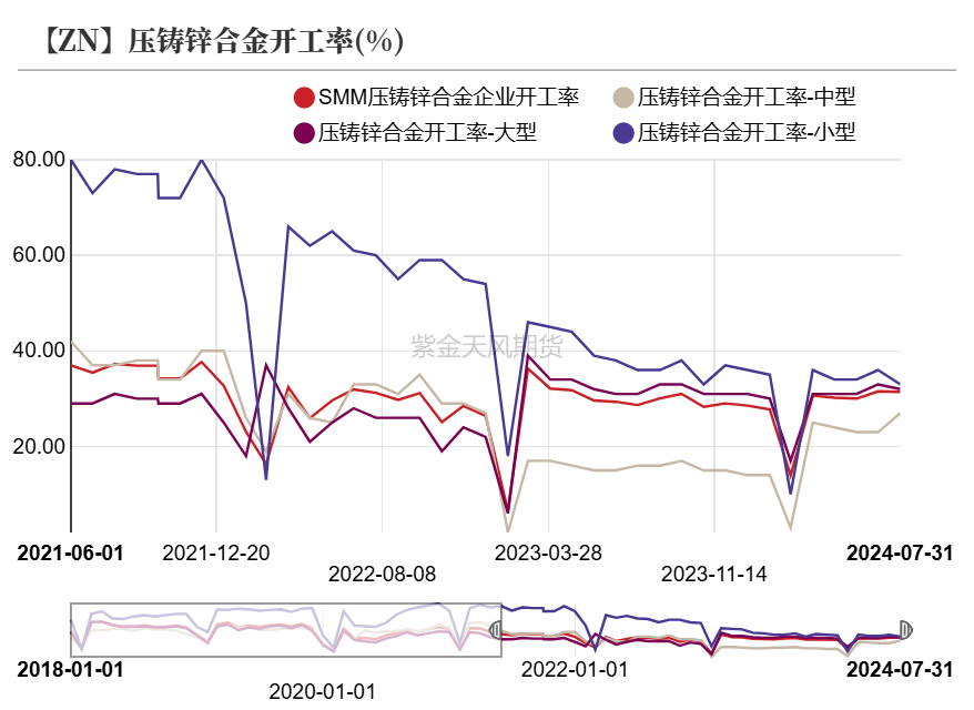 合金开工率:偏空 周度压铸锌合金开工录得54.25%,较上周下降0.72%。