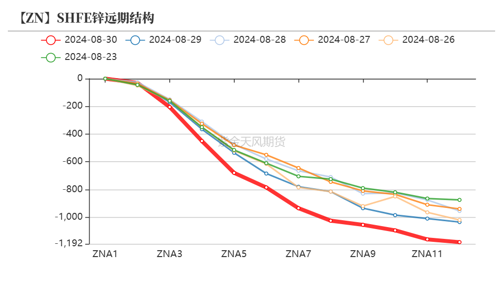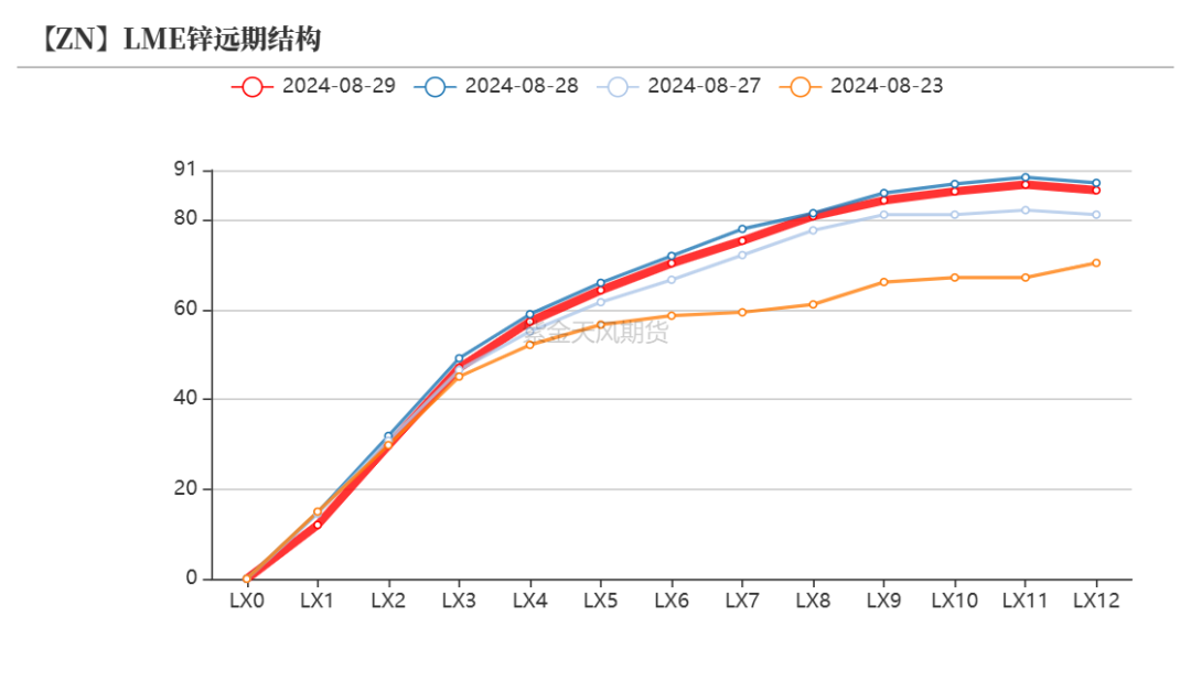 结构上看,内盘维持back结构,外盘维持contango,内盘近月月差坚挺,外盘贴水保持收敛;LME锌0-3贴水走扩至50美金附近。