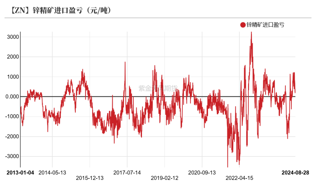 进口利润:偏多 进口窗口关闭,LME锌锭较沪锌现货亏损180元/吨,LME锌锭较沪锌2409期货亏损290元/吨。