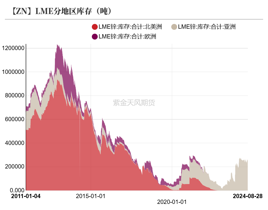 截至本周四,LME锌交割库存报24.63万吨,较上周同期减少1.05吨。海外库存本周持续去库。