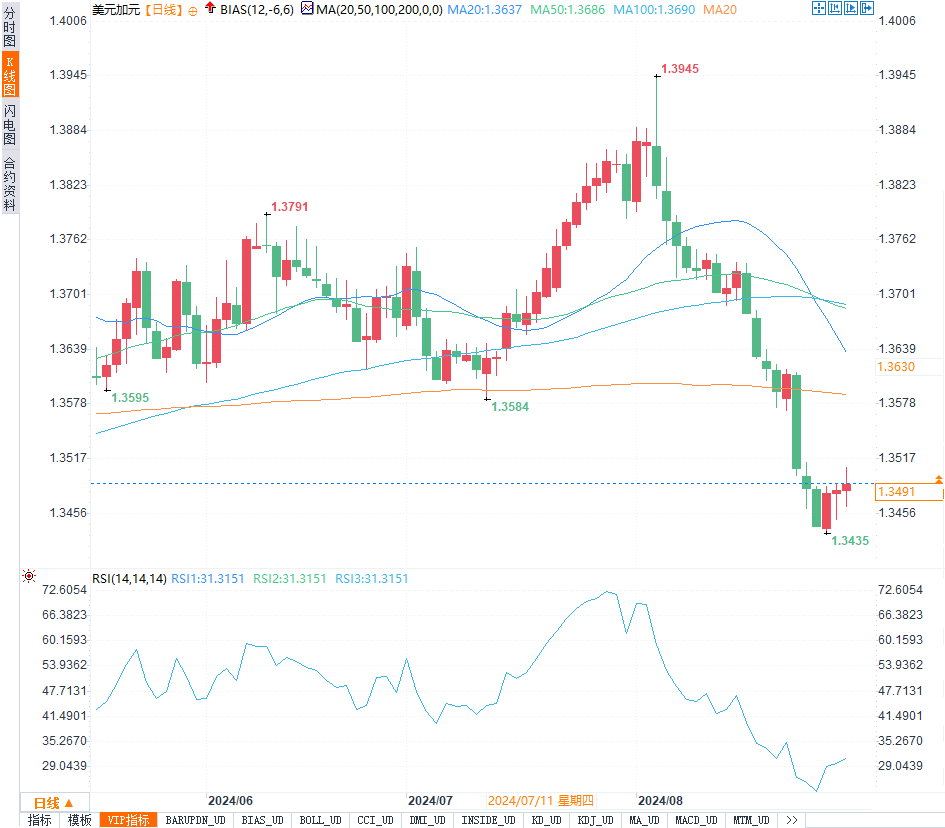 加拿大第二季度的国内生产总值(GDP)年化增长率为2.1%,超出分析师的预期。然而,尽管数据表现强劲,加拿大经济的整体动能在进入第三季度时表现出疲弱。市场预计,加拿大央行将在9月继续降息以应对经济增长的放缓。