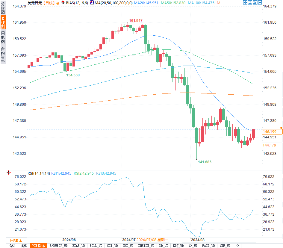 本周美元整体表现强劲。美元兑日元上涨0.8%,至146.09日元,创下了两周来的最大单日涨幅,且本周累计上涨1.2%,有望创下6月中旬以来的最大单周涨幅。尽管8月份美元兑日元下跌了2.6%,这是连续第二个月的下跌,但美元的总体走势仍受益于市场对美国经济数据的积极反应。