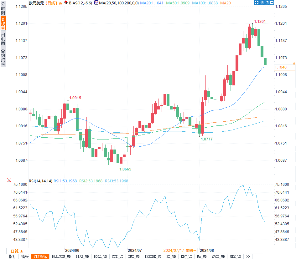 本周欧元兑美元下跌0.2%,收于1.1050美元,累计下跌1.3%,有望创下4月以来的最大单周跌幅。尽管8月欧元上涨2.1%,创下2023年11月以来的最佳月度表现,但欧洲央行的降息预期仍对欧元产生压力。