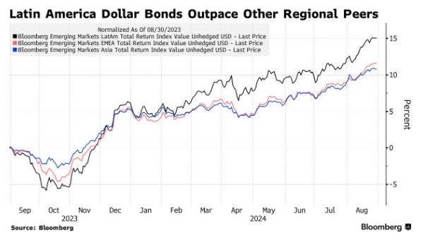 即便如此,在过去的一年里,GMO、Neuberger和PIMCO的基金表现击败了90%以上的同行,回报率超过16%,而彭博追踪的71只持有新兴市场债务、资产超过5亿美元的基金的平均回报率超过12%。他们能取得这样的成绩在一定程度上是因为他们今年从高收益的拉丁美洲主权债券中获得了可观的收益,随着价格变得更加合理,这种反弹现在将放缓。