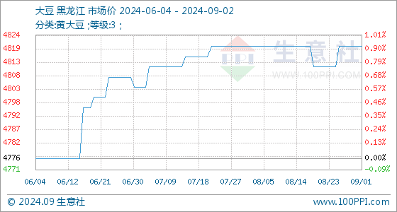 9月2日,生意社大豆基准价为4820.00元/吨,与本月初持平。