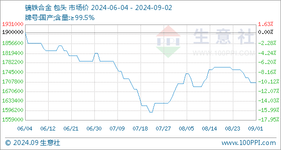 9月2日生意社镝铁合金基准价为1705000.00元/吨