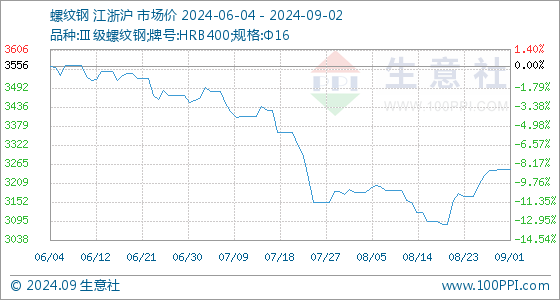 9月2日生意社螺纹钢基准价为3248.50元/吨