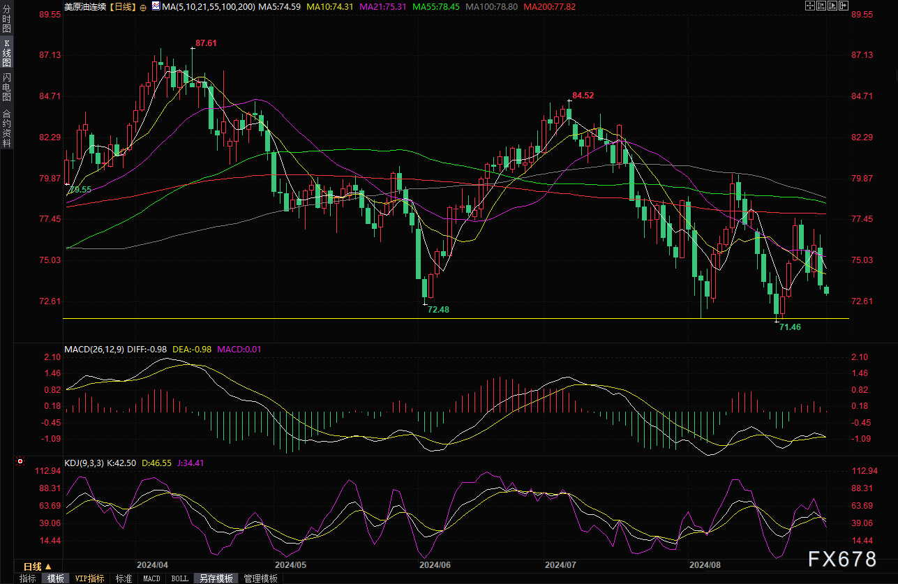 美国原油期货上周五结算价下跌2.36美元,跌幅3.11%,报73.55美元,上周下跌1.7%,8月下跌3.6%。
