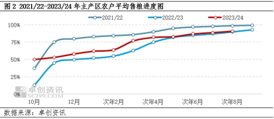 第二,从产区来看,今年种植面积同比下降,单产或尚可,上市初期市场供应或较为充足,价格承压。但从销区市场及食品厂等下游库存来看,整体库存量处于低位,新粮上市不久后或陆续随采随销,阶段性补库需求或抑制价格跌幅。