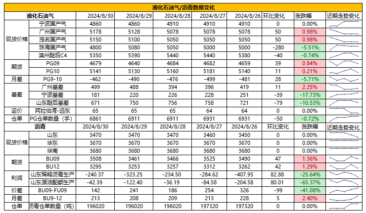 3.现货持稳,山东民用气5130元/吨,华东民用气4871元/吨,华南民用气5180元/吨。