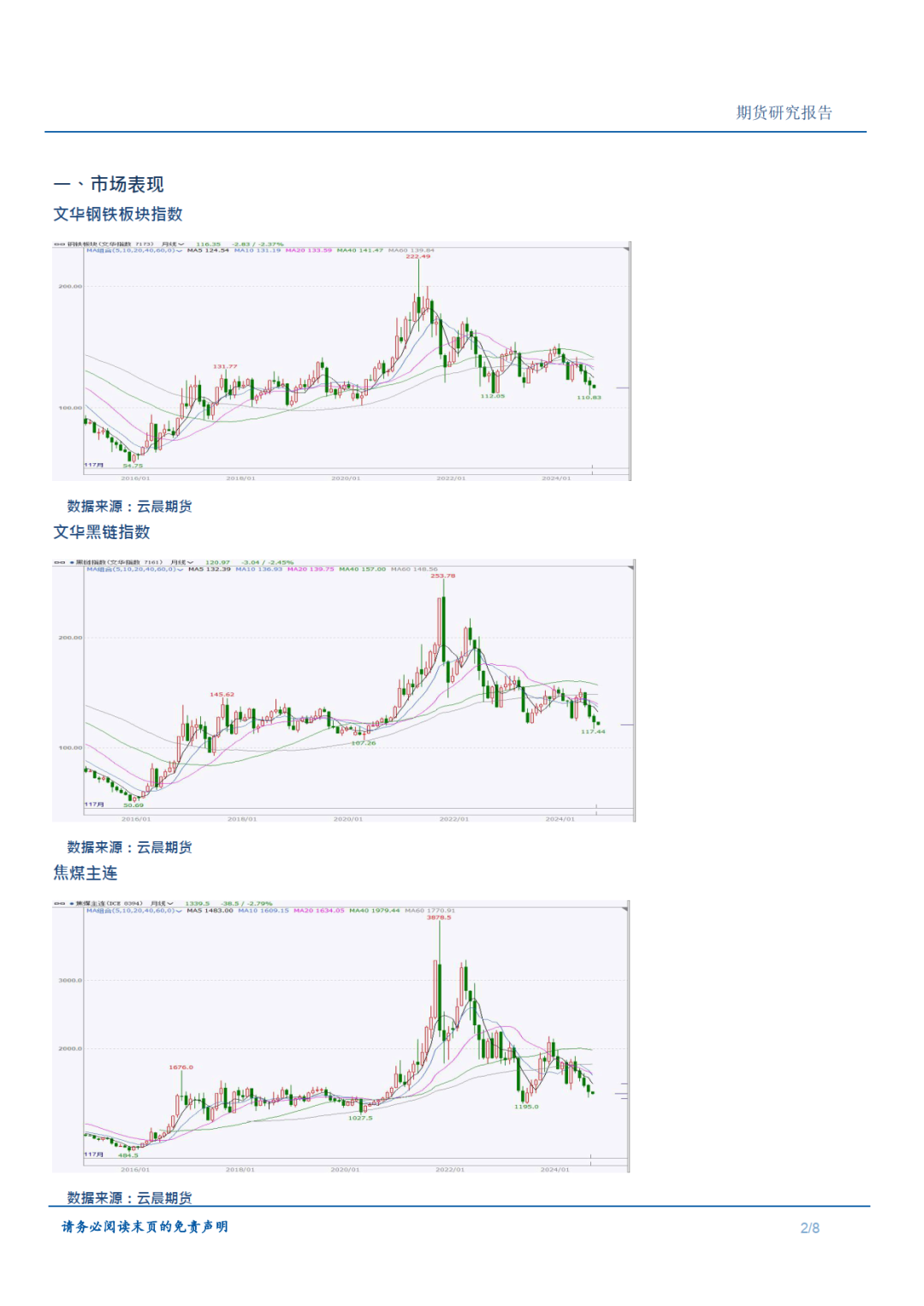 受行业低迷限制、季节性消费低迷及行业终端减产等影响因素,国内钢材价格维持下滑趋势,整个黑色板块价格延续下行。进入8月份,钢材板块表现依然需求乏力,国内钢企产量维持较低水平、终端成材库存维持较低水平,焦煤焦炭价格维持低迷走势。此外,国内钢材市场新旧国标更替事件,使得钢企减产未能大幅提振钢材成品价格,但预计对于下跌趋势减缓有一定作用。政策端,暂停产能置换、出口压力都很大程度上引导价格波动未能大幅走出此前行情,预计对于九月份价格造成影响较为均衡。