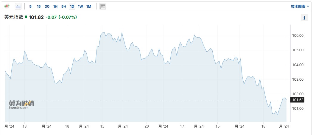 上周,在美联储主席鲍威尔释放出即将在9月降息的强烈信号后,美元指数自2023年7月以来首次跌至100.51的低点。不过,美元指数近期有所回升,原因是通胀数据支持较小的降息幅度,且美国GDP数据显示经济基础稳固,足以让美联储在放松货币政策方面不那么激进。截至发稿,美元指数报101.62。
