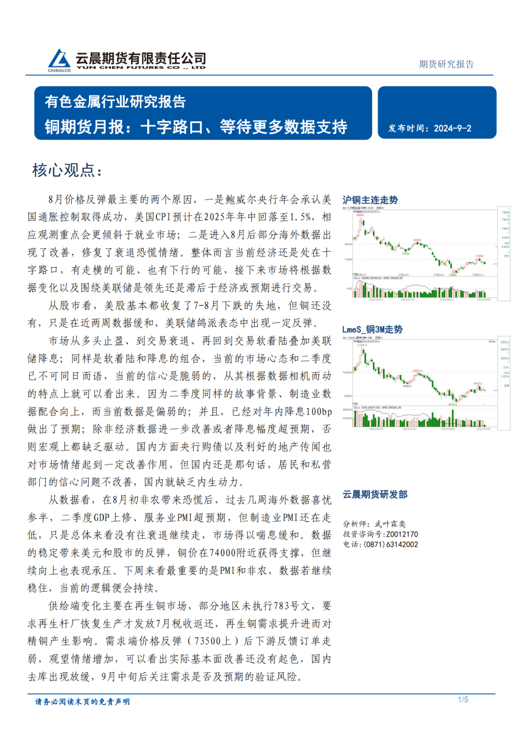 8月价格反弹最主要的两个原因,一是鲍威尔央行年会承认美国通胀控制取得成功,美国CPI预计在2025年年中回落至1.5%,相应观测重点会更倾斜于就业市场;二是进入8月后部分海外数据出现了改善,修复了衰退恐慌情绪。整体而言当前经济还是处在十字路口,有走横的可能、也有下行的可能,接下来市场将根据数据变化以及围绕美联储是领先还是滞后于经济或预期进行交易。
