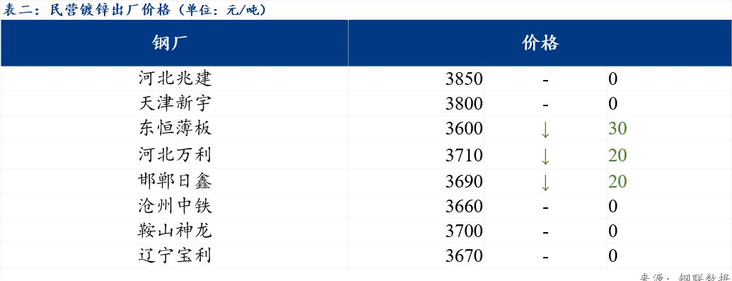 现北方地区民营镀锌板卷整体出厂价格在3600-3850元/吨。