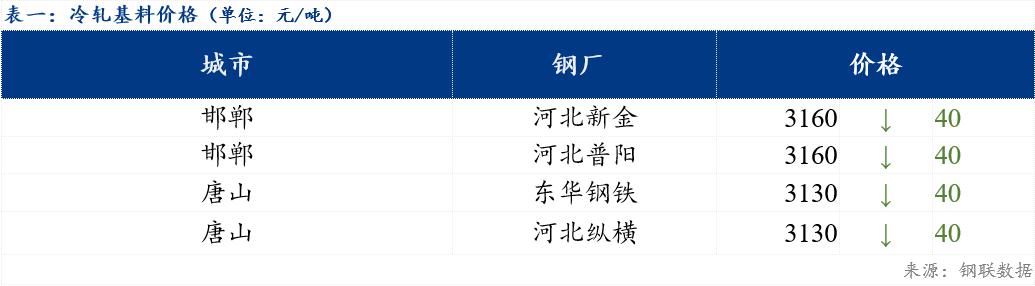 今日北方市场冷轧基料3.0*1010*CSPHC河北普阳价格为3160元/吨,较上一期价格下跌40元/吨,河北纵横价格为3130元/吨,较上一期价格下跌40元/吨。镀锌方面,今日北方地区部分钢厂指导价下跌20-30元/吨;轧硬方面,今日冷轧硬卷价格持稳。市场方面,部分市场现货价格跟随期货盘面价格下跌,整体出货量不佳,鞍山神龙钢厂镀锌产线有检修情况,市场流通资源减少,预计5日检修结束。心态方面来看,总体需求疲软,大多数贸易商对于后市行情多持谨慎偏心态为主,终端客户以刚需采购为主。
