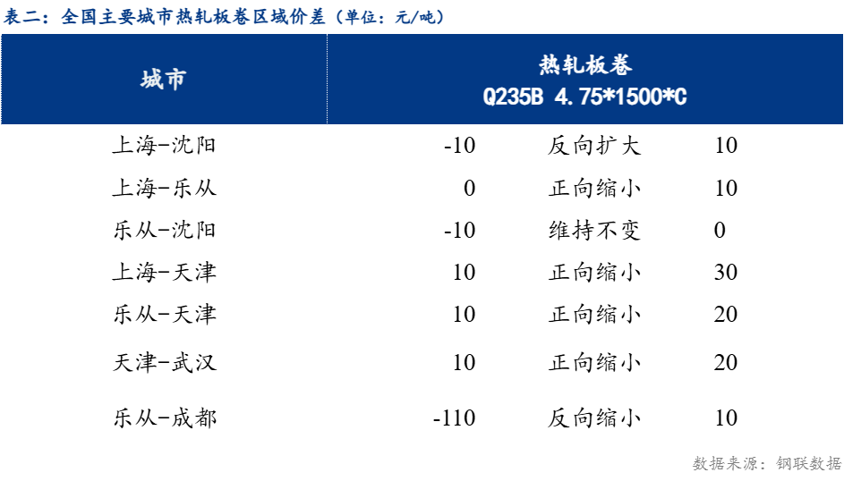 从区域价差来看,华东与东北价差-10元/吨,较上一交易日反向扩大10元/吨;华东与华南价差0元/吨,较上一交易日正向缩小10元/吨 ;华南与华北价差为10元/吨,较上一交易日正向缩小20元/吨。