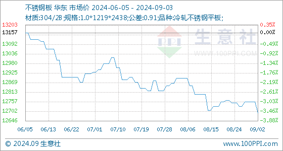 9月3日生意社不锈钢板基准价为12692.86元/吨
