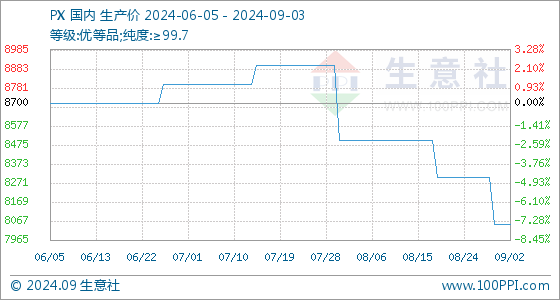 9月3日生意社PX基准价为8050.00元/吨