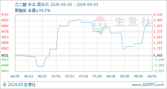 9月3日生意社乙二醇基准价为4678.33元/吨