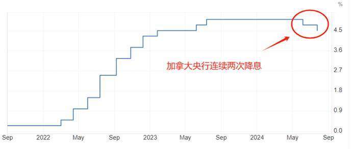 本周三21:45,加拿大中央银行将公布9月利率决议结果,市场普遍预期其将降息25基点,基准利率自4.5%回落至4.25%。今年6月份和7月份,加拿大央行已经分别降息25基点,如果9月再次降息,其将成为欧美国家中央银行当中首次连续三次降息的央行。通常情况下,降息将会导致本币吸引力下降,加拿大元存在贬值风险。但是,美元指数背后的美联储存在更强的降息预期。由于美元指数主导了USDCAD的走势,所以美联储降息预期对美元指数的冲击作用大于加拿大央行降息对加拿大元的冲击作用,加拿大元将受到反向提振。
