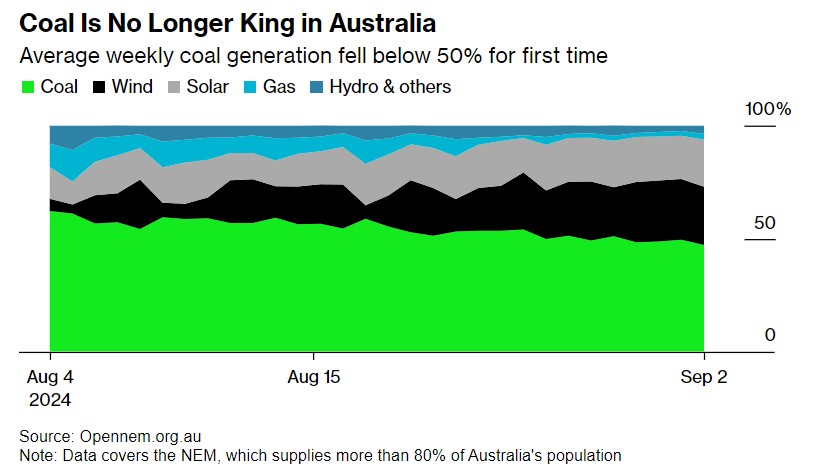 澳大利亚历史性的一刻!煤炭发电规模首次低于50%