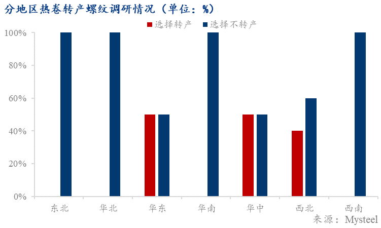 1、选择热卷转产螺纹的生产企业占比并不高,转产主要还是由于热卷利润不佳和接单压力所致。
