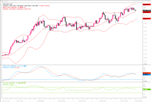 周一(9月2日),现货金下跌约0.1%,收盘在每盎司2499.29美元,盘中稍早曾跌至8月23日以来最低2489.93美元。由于美元继续反弹之中,金价也是持续处于小幅调整性回落走势行情。