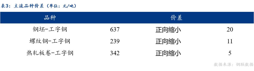 从品种价差来看,今日工字钢与钢坯、螺纹钢、热轧板卷价差正向缩小。