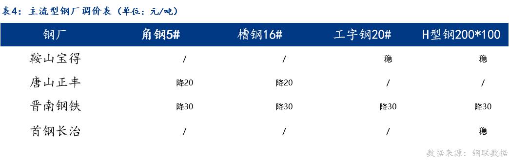 2、成交量为20家型钢厂当日成交,其中包括工字钢6家、角钢7家、槽钢7家。