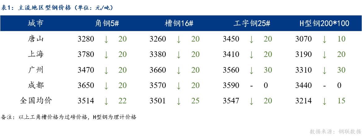 华东地区:今日华东型钢价格趋弱运行,成交偏弱。从盘面来看,期螺持绿震荡下行,市场悲观情绪蔓延,市场信心严重不足;从原料端来看,原料钢坯价格持续下跌,成品材底部支撑力不足;从供应方面来看,调坯厂受利润影响,暂无复产计划。现阶段,贸易商补库意愿普遍较低,下游需求表现不佳,对后市走向两极分化较为严重。综合来看,预计明日华东型钢价格趋弱运行。