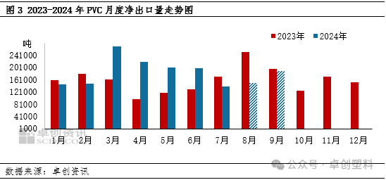 受印度BIS认证政策影响,7月中国PVC出口接单量有限,导致8月份PVC出口交付量受影响,而8月中旬开始PVC出口接单量明显增加,但多数9月份交付为主,所以预计8月份出口交付量环比变化不大,而9月份出口交付量环比将继续增加。对于进口来说仍以进料加工方式,进口量维持偏低。所以预计8月份净出口量变动不大,9月份净出口量环比增加。
